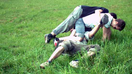 "Nach der sozialen Phase des Alkohols beginnt dann (meist im Zusammenhang mit Frauen) der Brutalus Aktus bei Männ0rn. Henson(blutverschmiertes Bein) wird hier grad von Artack (mitte) und Sciencer (oben) geownt "