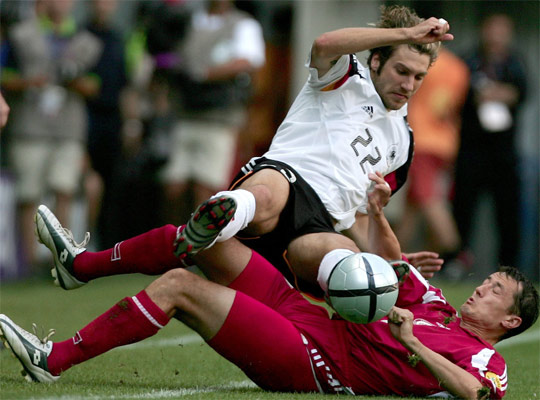 Ich denke der Rudi is da schon auf dem richtigen Weg. Der baut ne junge Mannschaft auf, die 2006 zur WM schon um einiges erfahrener ist. Und diese ganzen Rücktrittsrufe kann ich auch ned verstehen. Das einzig schlechte Spiel bei der EM war das gegen die Letten und genau da hat man sich den Einzug ins Viertelfinale versaut.