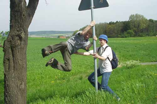 "..Straßenpfeiler immer so leicht wegknickten übten wir asiatische Kampftechniken ausschließlich an solchen Metallstäben, wie Henson hier eindrucksvoll verdeutlicht. Thomas ist aktiver Schieber.