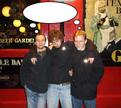"nicht mal ein orderntliches gruppenfoto kann man machen, weil der artack eins auf besoffenen machen muss...dabei hat die pfeife nicht ein guiness angerührt..."