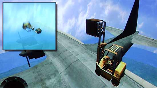 "WTF!? In einer handgemachten Farcry Map fanden wir auf einem Flugzeug in 2000 Meter Höhe einen Gabelstapler(!!). Nachdem ein paar Kisten umgestellt wurden waren stürzte das Ding dann leider ab und Staplerfahrer Indigo ging drauf .
