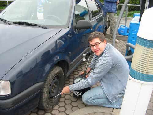 "...ging´s raus zur Tanke, wo ich meinen Flitzer auf schlaffe Treter überprüft habe...