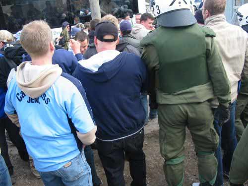 "...gab´s dann noch mal tierisch auf´n Sack, als das Spiel vorbei war. Da haben sich Ultras und Bullen noch mal richtig verwackelt. Die Action kommt auch auf diesem Bild nicht ganz so rüber, aber die Bullen haben schon ordentlich ausgeteilt.