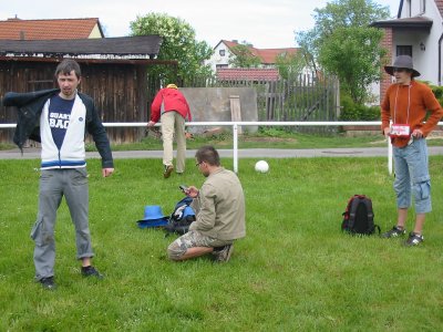 Schnell wurden Teams gebildet (Team Blau und Schwarz...wegen der Hüte) und ein wildes Gekicke begann. Nach unzähligen Fouls und verbalen Attacken (der Schiedsrichter schritt seltsamerweise nicht ein) stand es am Ende 10:4 für Team schwarz."