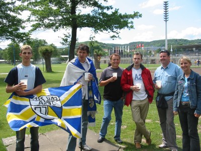 "...entschlossen sich zum heutigen Spiel zu fahren. Von rechts nach links: mein Cousin André, Ulle, Ulle Senior, Bert R. aus N., Jürgen (der Stief-Dad vom phun) und meine Cousine Sabrina.