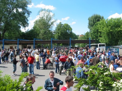 "...(mit kurz vorher sind 40 Minuten gemeint) machten wir uns vom Fan-Haus auf den Weg zu unseren Plätzen auf der Tribüne. Hinter der Tribüne war einiges los...es sah wirklich so aus, als würde die Hütte heut proppenvoll werden...*geilo* "Von ngl.hilkstar* 04.06.2005 - 22:25 Uhr - 0 Kommentare - 16 Besucher