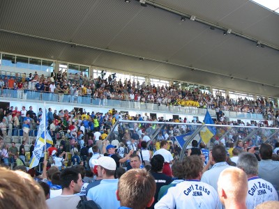 Vor der Tribüne wurde dann gefeiert, bis die Mannschaft endlich erschien..."