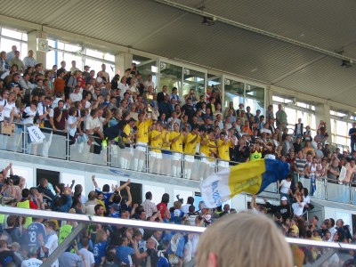 "...der die 3. Liga verspricht. Da wird er von Spieler zu Spieler durchgereicht. Die Fans feiern und singen enthusiastisch!!
