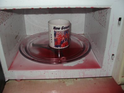 Weihnachten ist zwar schon lange vorbei, aber trotzdem befand sich in unserer Minibar noch eine Flasche Glühwein. Am heutigen Videoabend war auch eine Frau anwesend. Nennen wir sie "Stadtroda." Diese Frau verspürte plötzlich großen Durst und wollte sich dieses leckere, weihnachtliche Getränk in der Mikrowelle erwärmen.