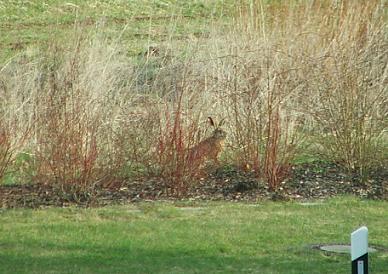 Auf diesem verwaschenem, verwackelten und unscharfen Bild erkennt man - wenn man supergenau hinschaut - etwas um das sich Mythen und Legenden ranken: Einen Osterhase! Tja. Nicht faul die Dinger, denn z.b. dieses Individuum hoppelte den ganzen Tach vor meiner Dienststelle auf und ab.
