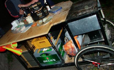 Jedenfalls war der Punkt, dass mich und Shagga nach diesem Film - quasi auf dem Heimweg - ein Kunde anhüpfte und heraussprudelte mit: "Wollt ihr 'ne Bratwurst oder'n Bier" .kurz nachgegrübelt. "yeah!! natürlich." .. fix mit hingeschaut und schon standen wir neben einer Bassrolle die "Ice, ice, baby ice" im Originaltrack abspuhlte, Bratwürste grillte, mehrere Biertanks im Bauch hatte und obendrauf noch eine coole Thekenfläche bot.. Genial..