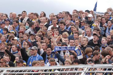 Noch Stunden nach dem Spiel feierten wir zusammen mit der Mannschaft auf dem Vereinsgelände, sangen Lieder, tranken Freibier.