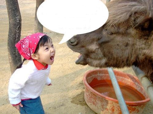 Kleines chinesisches Mädel: "AHHH, ein Pferd" Pferd "AHHH, ein Mia Zedong!"