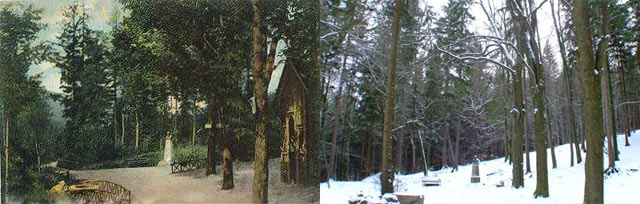 "Hier befindet sich heute viel Wald und fast nichts mehr erinnert an die kleine Rasthütte am Wegesrand."