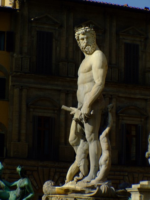 "In seinem Brunnen stehend war Neptun reichlich schön anzuschauen und machte ein gutes Motiv gegen den dunklen Hintergrund. Jetzt wo ich das Bild in groß sehe, mache ich mir Sorgen, ob ich nicht ein paar schwarze Balken ins Spiel bringen sollte ^^."