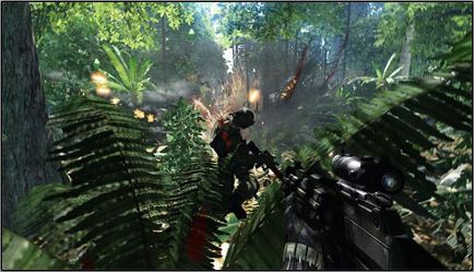Jedes Objekt wirft einen Schatten, alles existiert in Echtzeit vom Wetter über Tageszyklen bis hin zur Vegetation. Jedes einzelne Polygon der Vegetation wird individuell vom Wind beeinflusst. Schleicht man durchs Dickicht knicken Pflanzen und Blätter zur Seite, die Vegetation ist komplett zerstörbar. Für uns Konsumenten heißt das ein weiteres Mal den Pfad des PC-Upgradings beschreiten zu müssen, um das alles in voller Pracht sehen zu können.