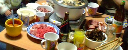 Am Abend hatte es eine Miniabschiedsparty gegeben, der nicht mehr als sechs Leute beigewohnt hatten. Während draußen die Temperaturen noch einmal tierisch in den Keller gesackt waren und die auf dem Balkon ausgelagerte Wäsche in wenigen Minuten erstarrt war, hatte es drinnen, in der engen, gemütlichen Küche für alle Feuertopf gegeben. Feuertopf auf deutsch hatte man zu deuten versucht und schließlich kam nur das Raclette als nächster Vertreter in Frage. Dieses war nun das letzte Abendmahl für hacker, bei dem jeder in einen gemeinsamen Topf voller Suppe irgendwelche Zutaten (Fleisch, Gehacktes, Wurst, Salat, Krebse, Fisch, Kohlblätter,...) versenkte um sich drei Unterhaltungen später die gegarten Pendante zurück zu erobern.