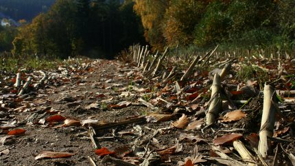 Auf dem Rückweg lenke ich meine Schritte über ein abgeerntetes Maisfeld. Mit meiner Orange-Gutelaune-Brille und dem Sonnenschein im Nacken fällt der ganze Pessimismus dieser sonst so unangenehmen, verregneten Jahreszeit von mir ab. Wozu über Niederlagen nachdenken. Auch dieser Mais zu meinen Füßen wird in 2 oder 3 Jahren wieder in voller Blüte stehen, um von uns Studenten als stärkehaltige und delikate Nahrungsquelle genutzt zu werden.