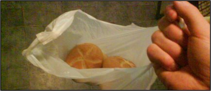 Heute vor 20 Minuten - im Besonderen - war etwas anders. Ihm hatte sein Öko-Bewusstsein diktiert, dass diese 5 Papiertüten pro Woche zuviel waren. Er besann sich auf "gute", alte Ostzeiten und lief mit einer gebrauchten Plastetüte zum Bäcker. Fordernd hielt er die geöffnete Tüte der Bäckerin entgegen und sagte: "3 Brötchen bitte". Die Geste schien hier nicht bekannt zu sein.