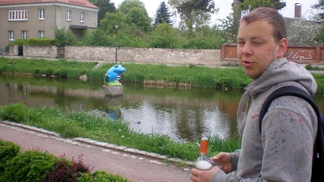 "Gleich hier entdeckten wir ein neues Kulturgut von Neustadt. Den blauen Frosch!"