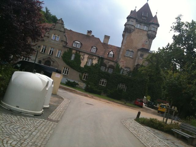 "News aus der Mittagspause: Das Kurheim in Kospoda wird massiv umgebaut. Ich war eben kurz drüben, wo nackte, glänzende Oberkörper in der Sonne reflektierten.. Das quasi-Schloss ist trotz der neuen Besitzer immer noch frei zugänglich.. Wer also schau'n und staun'n möchte.. Go ahead!"
