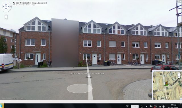 nicht schlecht. und wieso geht jetzt die straße eigentlich durch dass haus hindurch? hat bestimmt was in der zeitung gestanden: "google-auto in wohnsiedlung gekracht"... "vermutet werden anti-google-aktivisten, die vorsätzlich eine häuserkette auf der route des google-mobils errichteten" ...