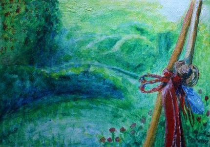 Da heute mein Hosenkacker eingeschlafen ist, hab ich nun mal ein größeres Format gewagt. In unter einer Stunde entstand dann ein Bild aus unserem Garten, in dem 3 Hügel (quasi mich, Dame und Kind) eingemümmelt sind.