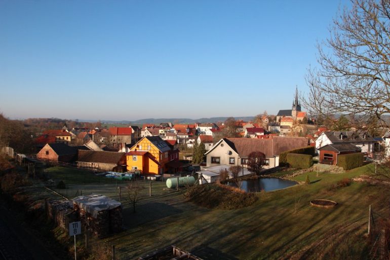 "Blick auf Neunhofen von der Bahnbrücke Richtung Miesitz aus. Das Dorf wird bunt!"