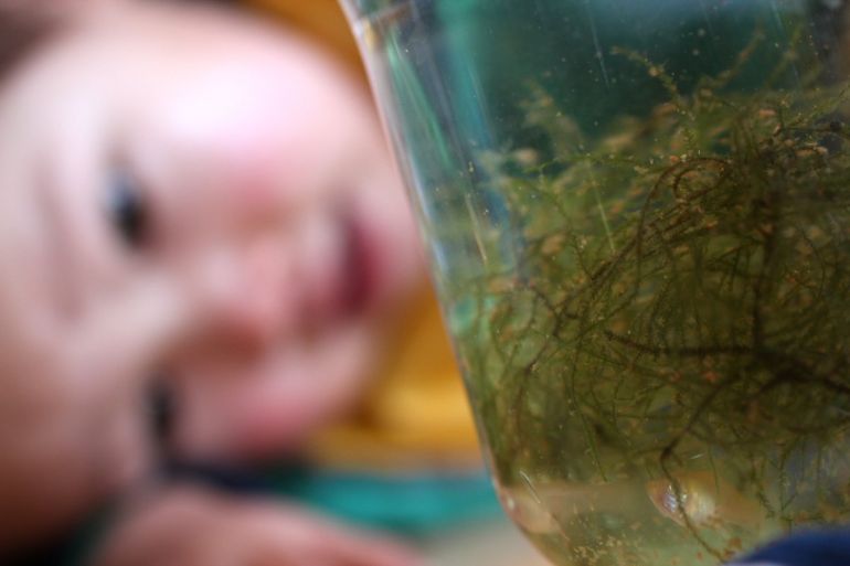 "Heute haben wir Fische gefüttert und sie dabei beobachtet."