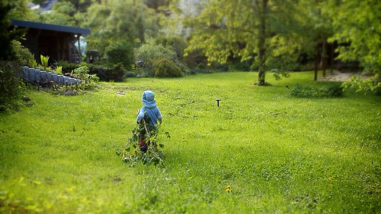 "Schwerarbeiter beim Zweige schleppen. Hinten links entsteht ein Minizaun für ein Hochbeet."