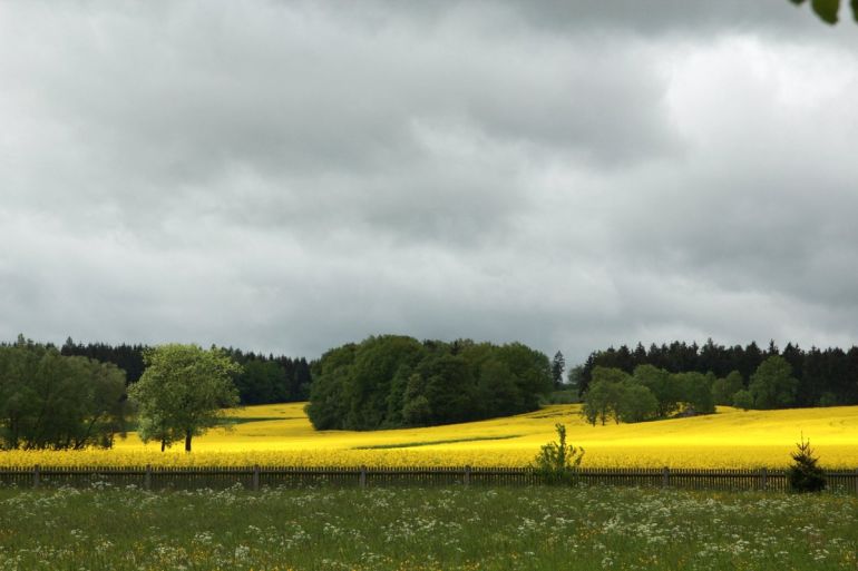 "Rapsmonopol?! N/O und Umgebung sind voller Raps. Sagen wir mit Biodiesel dem Öl den Kampf an? Hinten schlängelt sich die Straße von Kospoda nach Weira durch's gelbe Meer..."