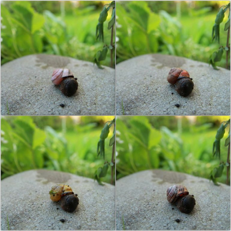 "Welches Haus setz ich heute auf. Schnecke mit der Qual der Wahl."