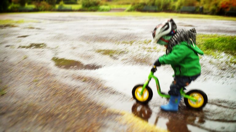 "Pfützenaction bei Nieselwetter.. Wir haben Spaß!