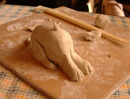 "Versehentlich landeten ich dann auch noch bei Fr. Manosch (Kunstlererin). Und als ich so schön prahlte, wie ich doch damals Lara Croft mit Ton nachgebaut hatte, hatte ich schon ein Stück Ton in der Hand und durfte kneten - Thema: Katze nachbauen.