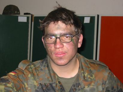 Wie ihr sehen könnt, kann die Bundeswehr (nachfolgend nur noch Bw genannt) ziemlich anstrengend sein! Aber laßt euch von diesem Eindruck nicht täuschen...das Leben eines deutschen Soldaten ist nur in den ersten Monaten seines Daseins (sprich: der Grundausbildung) dermaßen hektisch und anstrengend. Wobei man sagen muss, das die Grundausbildung den abwechslungsreichsten und somit interessantesten Teil im Leben eines Soldaten darstellt. Da kriecht man noch durch Dreck und Scheiße, ballert wild mit Waffen, übernachtet bei arschkälte draußen im Freien und meistert schwierige Übungen, wie zum Beispiel das retten und bergen von Verwundeten oder das durchwaten eines Flusses! *geil* Nach diesen spannenden drei Monaten jedoch, nimmt der Actiongehalt im Tagesablauf ziemlich stark ab. Im Grunde genommen hat man ja als deutscher Grundwehrdienstleistender überhaupt keine Daseinsberechtigung, denn eine Armee mit einer Stärke von 264 000 Soldaten, wird in einem Land mitten im vereinigten Europa wohl kaum gebraucht. Daher ist man mit der Verteidigung Deutschlands auch nicht sehr ausgelastet und es kommt wie´s kommen muss. Man vertreibt sich die Zeit mit anderen Dingen, wie zum Beispiel Karten, FHM und Playboy (MAXIM nicht zu vergessen), Donuts und anderen leckeren Snacks aus dem Mannschaftsheim und, ganz klar: PlayStation und DVD-Player (die beiden allerdings nur nach Dienst...*grumml*). Und natürlich Bier und Pizza (auch nur nach Dienst...*nochmehrgrumml*). Natürlich opfert man auch einige Minuten pro Tag, die armen, armen Steuerzahler zu bedauern, die einem dieses Leben im Schlaraffenland ermöglichen, aber die Trauer hält sich in Grenzen. Schließlich wurde einem in der Grundausbildung ja beigebracht kein Mitleid zu zeigen...bestes Beispiel: im Nahkampf!! Denn liegt ein Soldat in seiner Stellung hat er zwei Dinge direkt neben sich liegen zu haben. 1. ein zweites Magazin und 2. den ausgeklappten Klappspaten (Bw-Standard), denn sobald das zweite Magazin verschossen ist, ist es die Aufgabe des Soldaten, den Feind auf Armlänge hernnahen zu lassen und ihm dann im Nahkampf mit dem Klappspaten den Schädel zu spalten! Das ist kein Witz!! Ein anderes brisantes Thema sind natürlich Frauen in der Bw!  Ich persönlich kann echt nich drüber meckern, wenn mir beim Gang durch den Standort eine echt schnuckelige 26-jährige Frau Feldwebel entgegen kommt, denn Jack Nicholson hatte in "Eine Frage Der Ehre" völlig recht: "es gibt nichts, und glauben sie mir Gentlemen, dass so sexy ist, als eine Frau, vor der man am Morgen danach salutieren muss!"